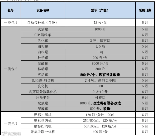 注:以上设备具体型号等要求按照公司提供的《正业生物设备采购文件》为准。