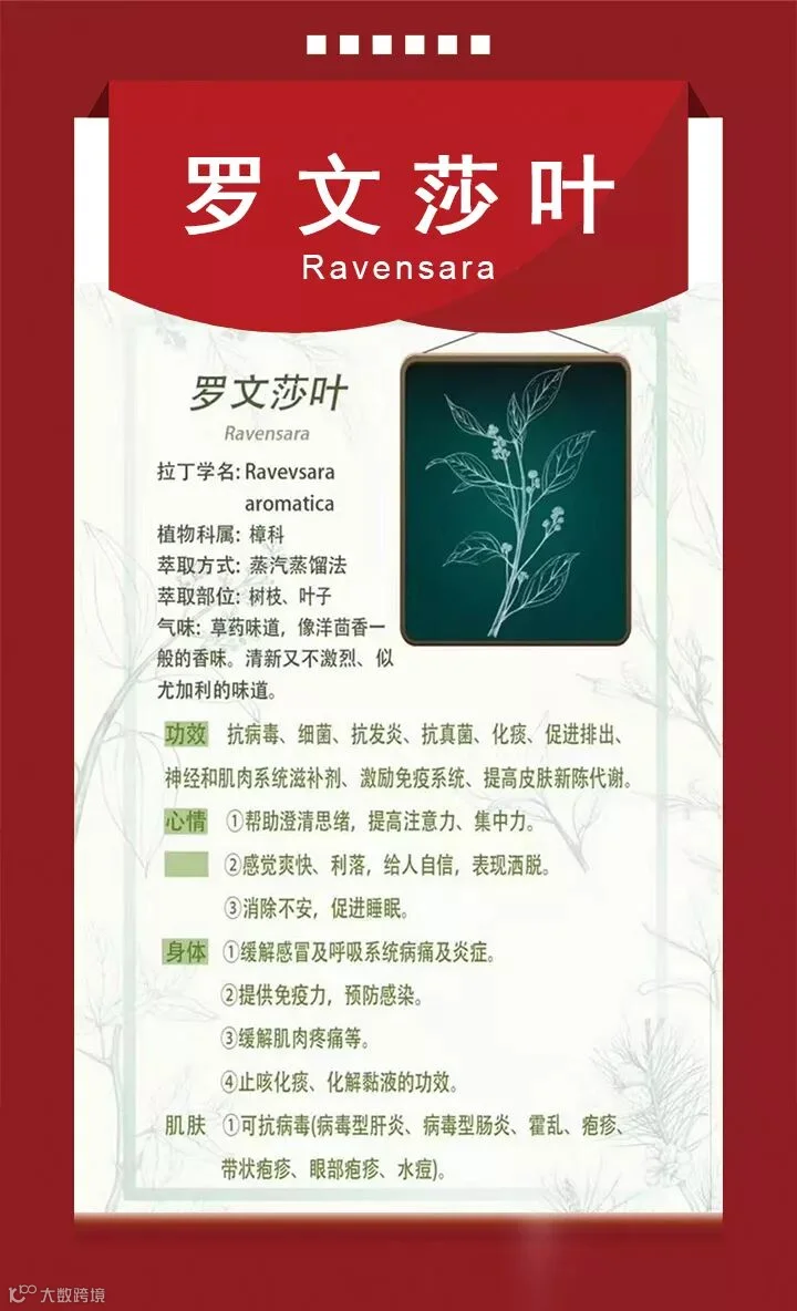 芳疗精油小贴士:罗文莎叶精油、茶树精油、尤加利精油、薰衣草精油、白玉兰精油、月桂精油等等均可达到芳疗效果。