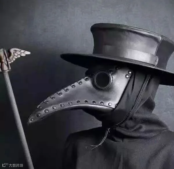这是是在黑死病横行的时期,专门医治黑死病的瘟疫医生(medico della peste),他们戴着鸟嘴面具,身穿黑色大衣,在黑死病肆虐的城镇里治疗患者,虽然面具让人疑惑是否真有防疫效果,但在当时可是有科学根据的。