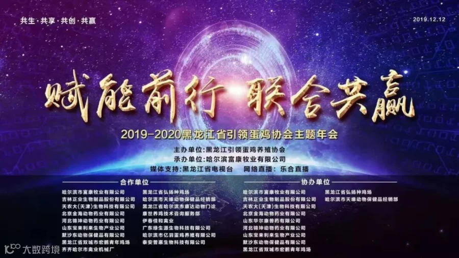 2019年12月12日,由黑龙江省引领蛋鸡协会主办的“赋能前行 联合共赢”的主题年会在美丽的冰雪城市哈尔滨胜利召开。来自全省600多家养殖企业和养殖终端者参加了本次会议。会议也得到了以正业生物、富康牧业为首的多家企业的赞助和支持。