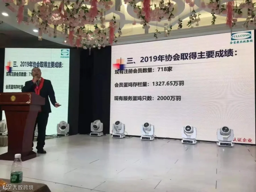 在会议上,协会会长尹守领先生做了报告,在2019年协会注册会员数达到了718家,会员蛋鸡的存栏量达到1327.65万羽,服务蛋鸡只数达2000万羽份,占整个黑龙江省养殖量的30-40%左右。