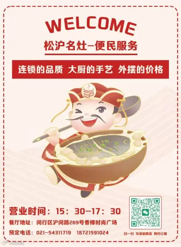 记住这个黄金时段 ——每天 15:30-17:30,松沪名灶门店外摆准时开卖。下班路过捎上几份,不用洗菜做饭,全家就能吃上热乎地道的手工菜。拒绝预制,坚守匠心,松沪名灶用最实在的便民服务,把厨房的烟火气送到你手中。