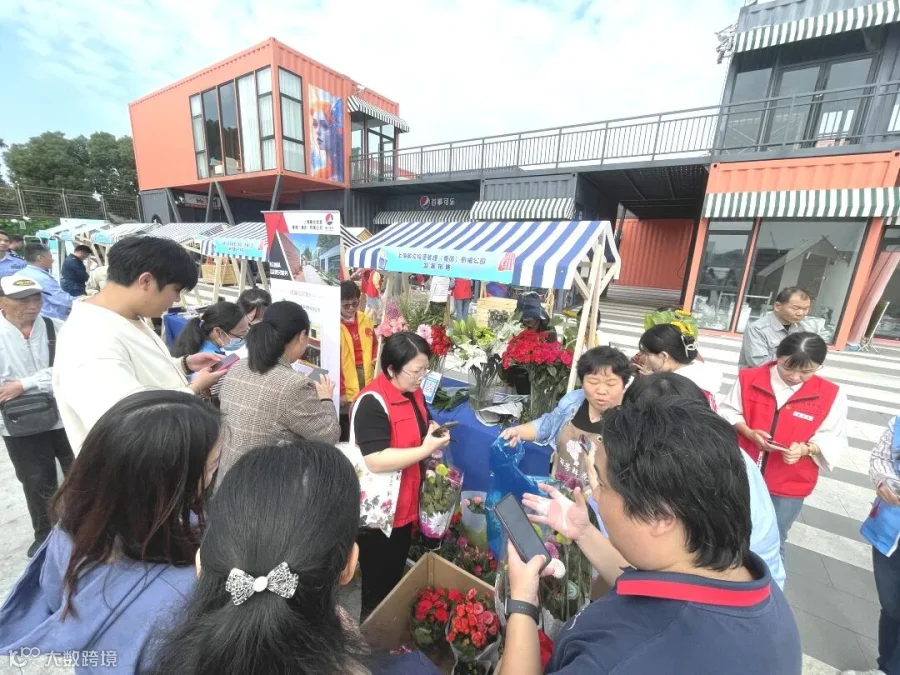 作为集市上绝对火爆的摊位,敏众集团的鲜花盆景摊位被逛集市的居民们挤得水泄不通,摊主小姐姐紧急从新安市场补货多次,依然“抵挡”不住大家的购买热情。