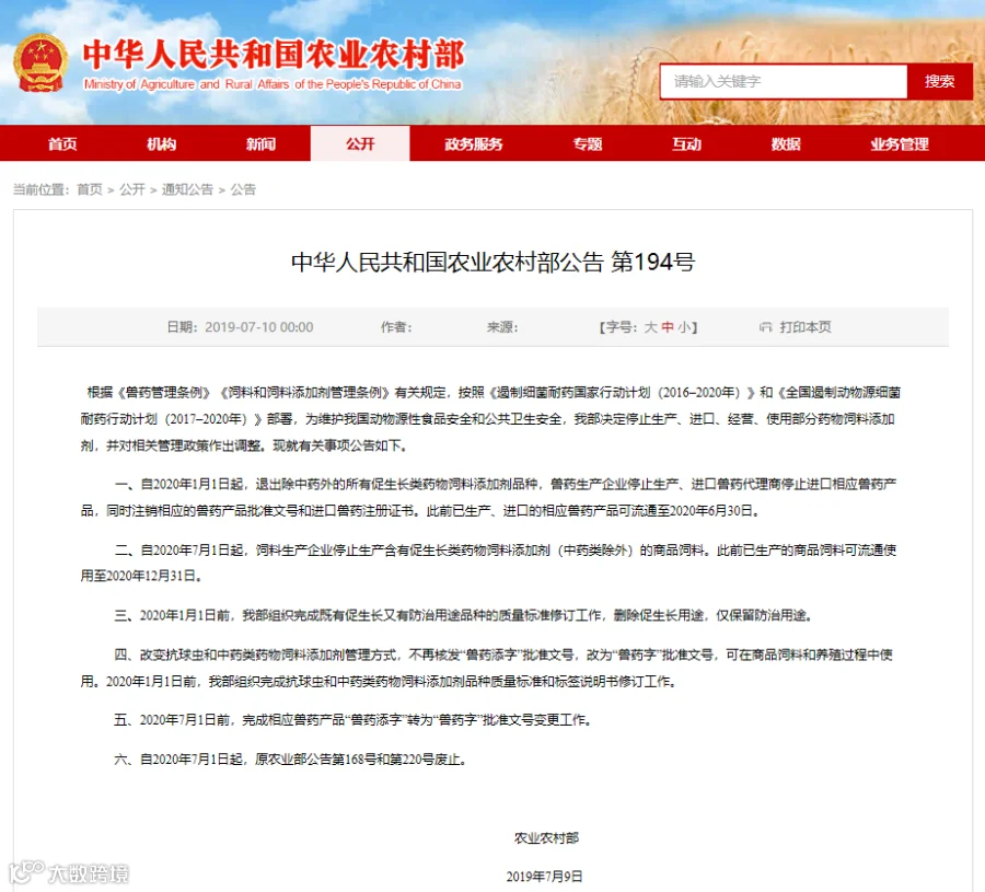 我国饲料无抗时间表: