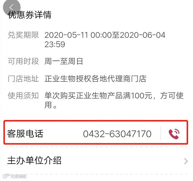 优惠券详情页有客服电话