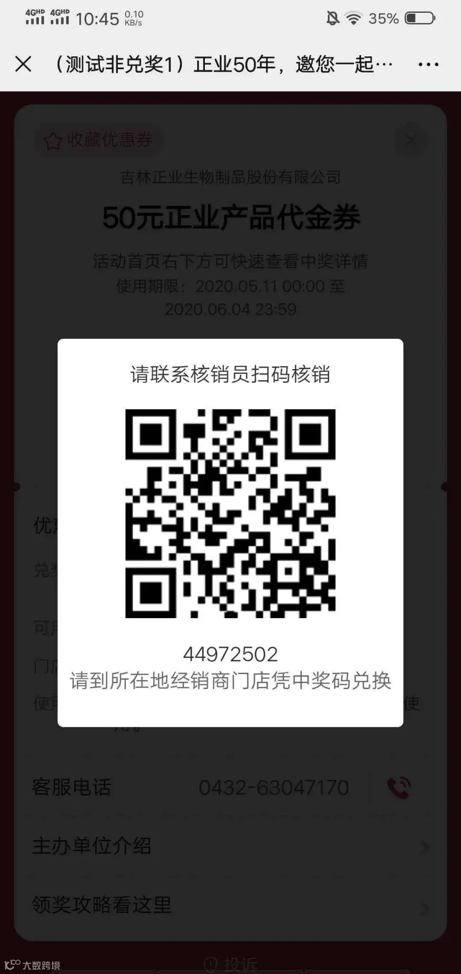 点击“立即兑奖”会显示出中奖二维码