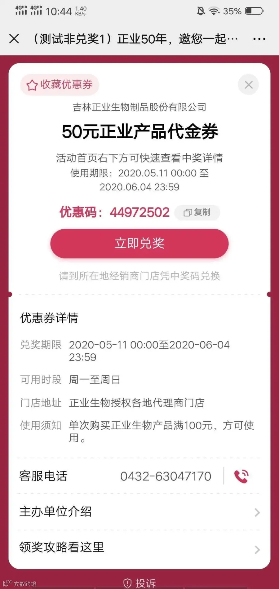 注意:一定要在2020年5月30日前完成兑奖哦,否则奖券就作废了呢~