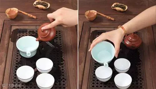 把杯子双手送到客人面前注意倒茶礼仪,以茶奉客的中国古代礼仪之本。
