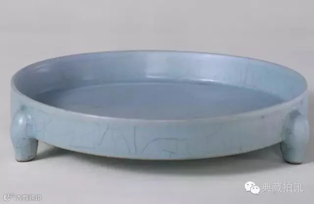 二、釉色:汝瓷为宫廷垄断,制器不计成本,以玛瑙入釉,釉色呈天青、粉青、天蓝色较多,也有豆绿、青绿、月白、桔皮纹等釉色,釉面滋润柔和,纯净如玉,有明显酥油感觉,釉稍透亮,多呈乳浊或结晶状。用放大镜观察,可见到釉下寥若晨星的稀疏气泡,釉面抚之如绢,温润古朴,光亮莹润,釉如堆脂,素静典雅、色泽滋润纯正、纹片晶莹多变为主要特征。视之如碧峰翠色,有似玉非玉之美。釉中多布红晕,有的如晨日出海,有的似夕阳晚霞,有的似雨过天晴,有的如长虹悬空,世称“天青为贵,粉青为尚,天蓝弥足珍贵。”汝州张公巷汝瓷,釉呈天青、粉青,釉色滋润,手感如玉。有青如天 、面如玉、晨星稀的典型特征。