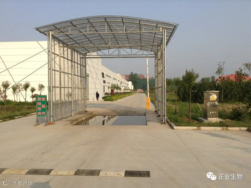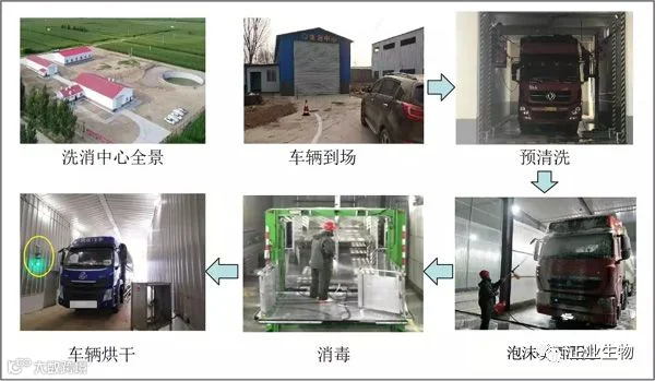 所以,杜绝所有外来车辆入场是最理想的做法。在离猪场500米以上的地产建一个临时停车场,供办公或者来访车辆停放。购买场内自用的饲料车,用来中转饲料,禁止外来饲料车入场。购买场内运猪车,用来中转销售的猪只,并在离猪场500-1000米以外的地方新建中转出猪台,从而禁止外开拉猪车靠近猪场。在此基础上,所有饲料车、运猪车、工作车都要进行严格的清洗消毒干燥流程。有条件的猪场可以建立专门的洗消中心(甚至是多级洗消)。洗消中心除了最基本的清洗消毒功能外,最好带有烘干功能。