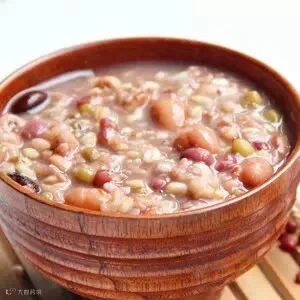 材料:薏苡仁10克,红枣5枚,白扁豆10克,莲子肉10克,核桃仁10克,桂圆肉10克,糯米100克,红糖适量。上述用料洗净一同放入砂锅,加适量清水,大火煮沸,小火熬煮成粥,调入红糖即成。