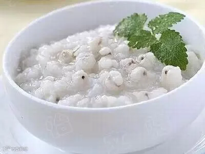 材料:薏苡仁15克,粳米50克,二者洗净一同放入砂锅,加适量清水,大火煮沸,小火熬煮成粥。