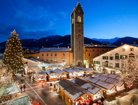 16. 维皮泰诺,意大利 (Vipiteno, Italy)——位于意大利北方的小村落维皮泰诺到了圣诞节时,市集上四处都挂满了圣诞灯饰,闪烁在每栋可爱的小房屋上。