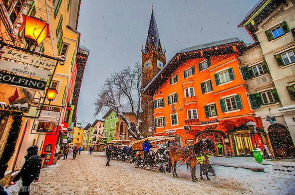 12. 基茨比厄尔,奥地利 (Kitzbühel, Austria)——基茨比厄尔有着许多缤纷建筑,可爱的模样就好像童话里的彩虹村庄。