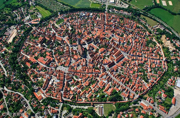 15. 讷德林根,德国 (Nördlingen, Germany)——讷德林根是座完全被城墙所围绕的城镇,且建立在千万年前陨石造成的坑洞上。这里的房屋自成一格,大片的红屋顶宛如乐高世界里一幢幢可爱的小房子。