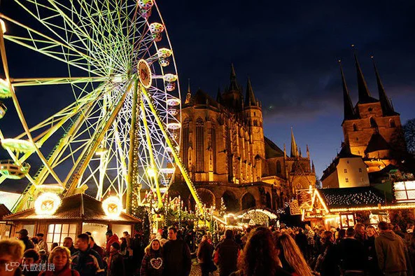 3. 艾福特,德国 (Erfurt, Germany)——艾福特是位于德国中部的一座小城镇,夜晚的灯光打亮在中世纪留下的城堡时更显得古色古香。