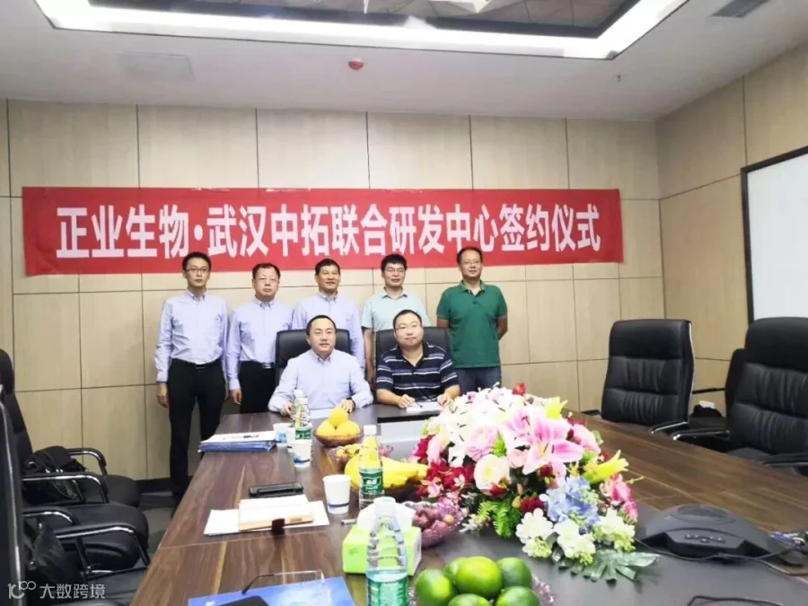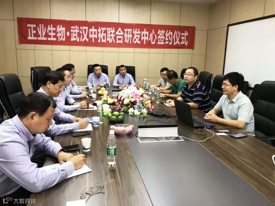 9月15日早上,借助参加第七届中国兽药大会的机会,“正业生物(武汉)联合研发中心”正式挂牌,正业生物总经理宋松林、常务副总经理董雅文、副总经理何玉友、廉维以及各大区销售总监和技术老师出席挂牌仪式,参观中拓康明实验室,并与其首席科学家杜恩岐博士等进行了交流。