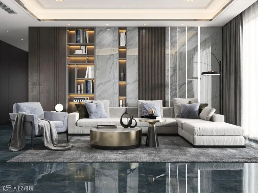 美洲灰板面的纹路如同冰封了的海面上夹杂着绵密细致的裂痕,适合大面积铺设墙面与地面。沉稳内敛的装饰效果,归功于其流畅舒缓的纹理和层次给予空间无尽的深邃及神秘感,不动声色拂去尘埃之气。
