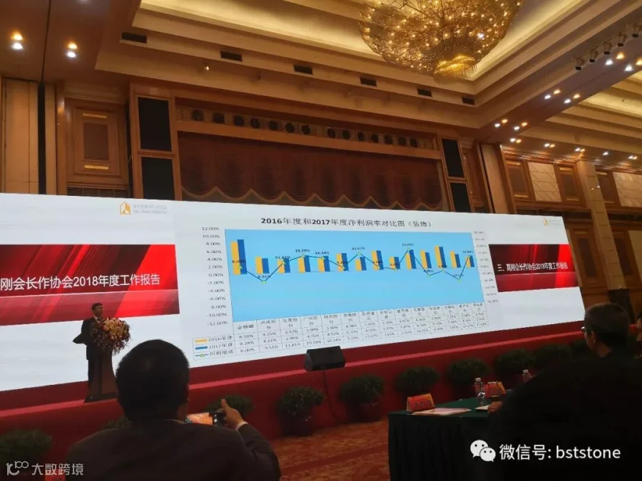会议期间,深圳市装饰行业协会的高刚会长对深圳装饰行业的工作作出了汇报,汇报中公布了装饰行业2016年年度和2017年度的营业收入、净利润、净利润率以及ROE数据的对比图,这些数据都表明了近年来深圳装饰行业发展呈稳步上升趋势,我司也紧随着社会、行业发展的脚步而不断地发展、进步。