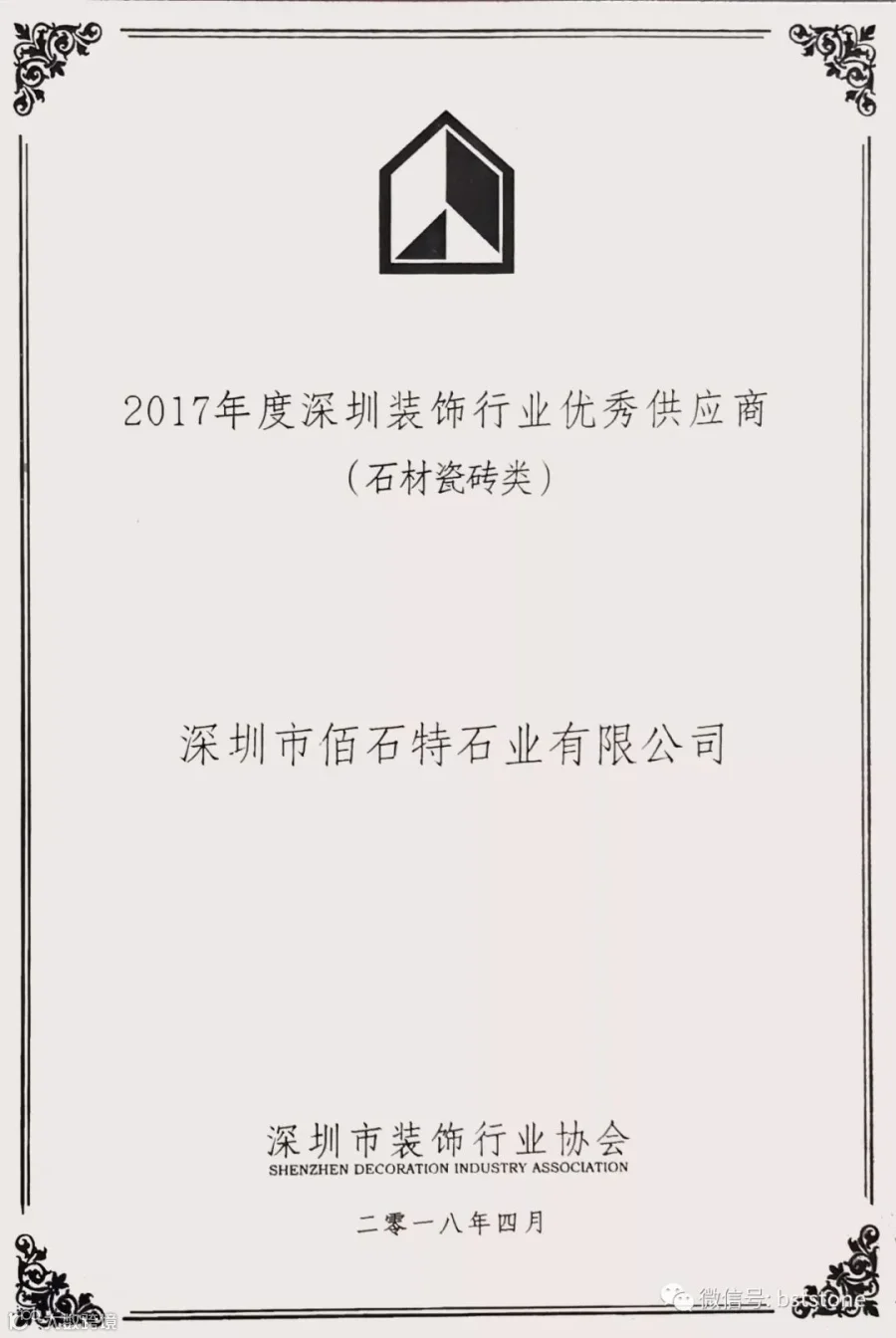 佰石特——“2017年度深圳装饰行业优秀供应商”