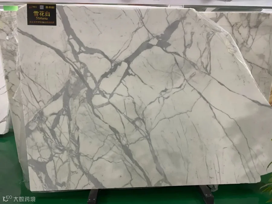 雪花白网比较多,黑点(雪花点)明显,底色越白越贵,纹路也分大花,中花和细花。雪花白是冷白色系的。