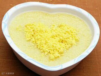 蛋黄小米粥 原料:小米2小把、鸡蛋1个
