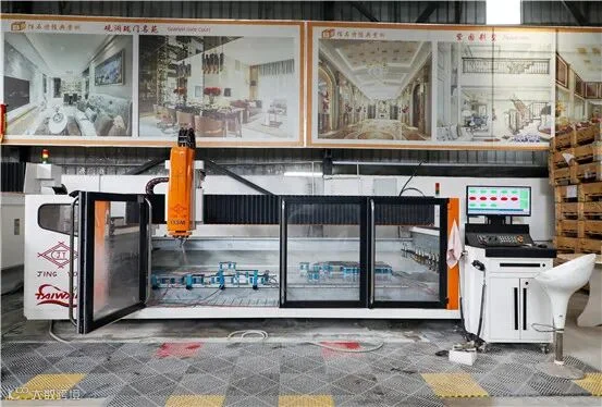 引进世界先进的——全自动加工中心机,以及全自动磨边机、水刀机、倒边机、仿形机,对板材进行抽槽、倒角、撇底、磨边、线条,保证精确度及光度。