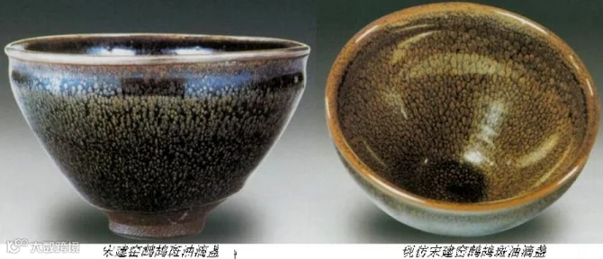 新瓷往往釉面有一层浮光,光亮刺眼,或者说叫做“生性”,即使用消光剂或其他方法去掉表面浮光,也不会呈现古瓷温润的莹光,釉面会有无数细痕,发污,失去了光泽,也失去了神韵。