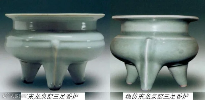 如龙泉瓷胎体中含有较多的铁元素,烧成后器物的足部边缘呈现铁红色,称为“二次氧化”。仿制的龙泉瓷,器形、釉色均可乱真,但底足的做法却与古代不同。