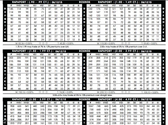 上图为Rapaport Diamond Report全球最权威的国际钻石报价单。