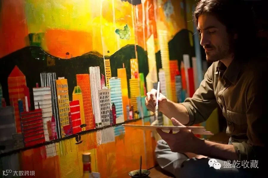 弗朗西斯科的作品多为丙烯和油画颜料,有时也用拼贴材料是作品有更丰富的材质和深度。作品完成后上油增加光泽、增强色彩。