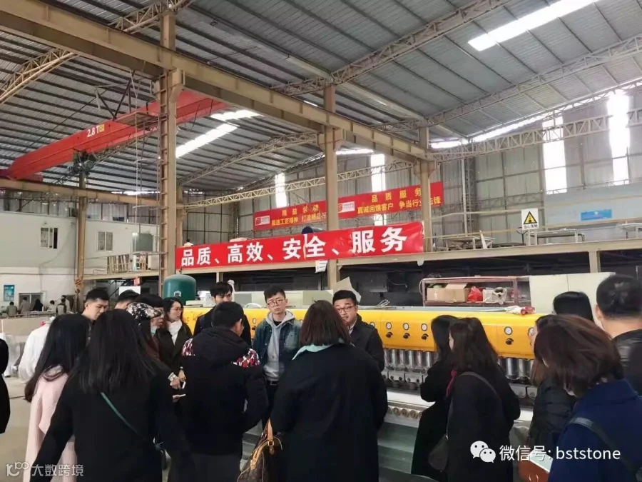 上午十一点半左右大家到达佰石特集团加工中心,由市场部厉彬燃先生向大家介绍石材加工流程及机器设备,经过详细的介绍和参观,大家对石材的加工过程更加的熟悉了。