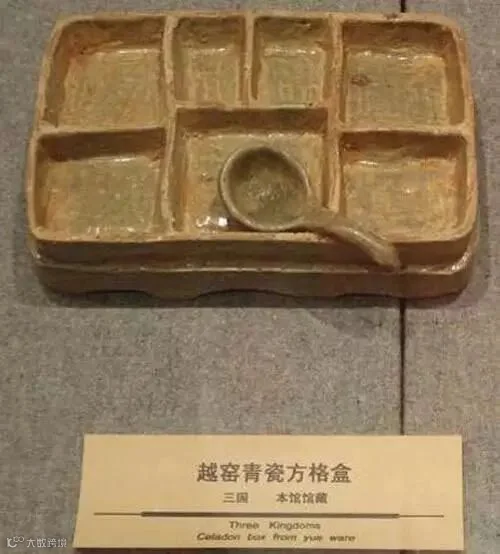 三国时期的饭盒“越窑青瓷方格盒”,跟现在食堂用的快餐托盘简直就是一模一样!三国时的小白领就知道用饭盒带饭了。之所以确定它是一般的饭盒、是因为同样形制的餐盘还有'礼盒’!!!朱然墓出土过一件这种餐盒、不同的是朱然墓的是精美绝伦的漆器、每一格都画有一个圣兽。