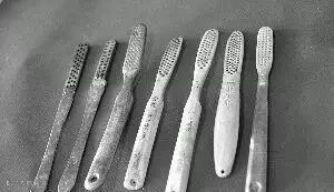 这是内蒙赤峰辽国墓葬出土的一堆牙刷。中国的牙刷最早是东汉发明的,大多都是骨制器。