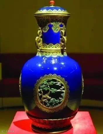 转心瓶夹层上的12个牙雕人物还可以活动,如果用手拨弄人物,他们会在摆锤的作用下叩头、作揖,形象栩栩如生。乾隆官窑生产了二三十对转旋瓶,但这种结构的仅此一件。