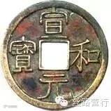 九叠篆“皇宋通宝”钱,九叠篆原是一种流行于宋代的“国朝官印”字体,主要用于印章镌刻,其笔画折叠堆曲,均匀对称。每一个字的折叠多少,则视笔画的繁简确定,有五叠、六叠、七叠、八叠、九叠、十叠之分。之所以称为“九叠”,则是因“九是数之终,言其多也”,将九叠篆用于钱文,“皇宋通宝”钱为第一例也是最后一例。