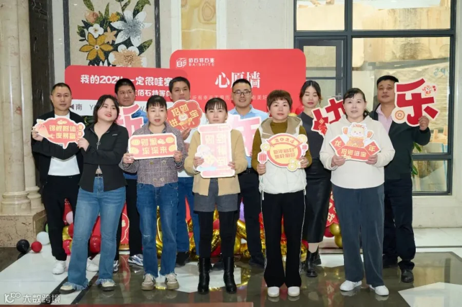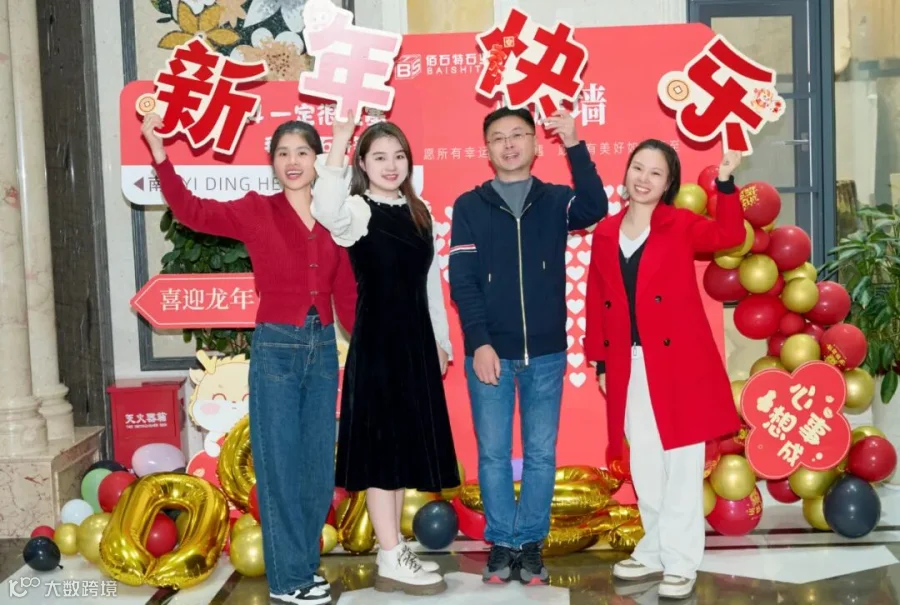 年会当天人头攒动,签名墙更吸引了众多同事的关注。大家纷纷在墙上留下自己的名字和祝福,寓意着对佰石特石业的热爱和对未来的美好期许。