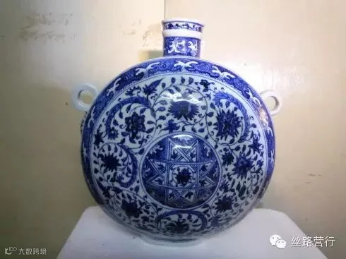 永乐有苏麻离青青花双面扁瓶结晶斑网状特征
