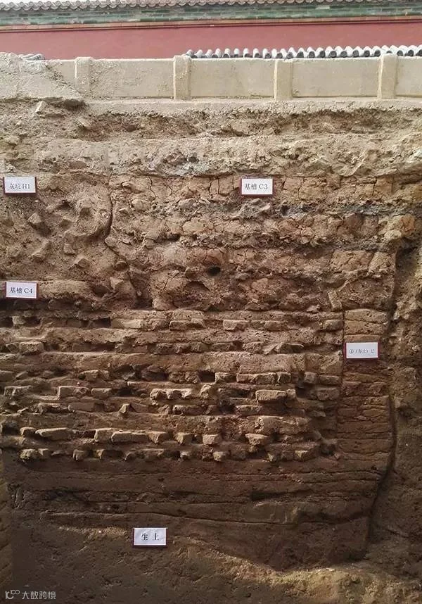 故宫研究院考古研究所所长李季介绍,地层位于隆宗门以西,经考古发掘确定其层位关系由晚及早分别为:清中期的砖铺地面和砖砌排水沟;明后期的墙、门道基址、铺砖地面、砖砌磉墩和明早期的建筑基槽;最下层的素土夯筑层和夯土铺砖层基槽。