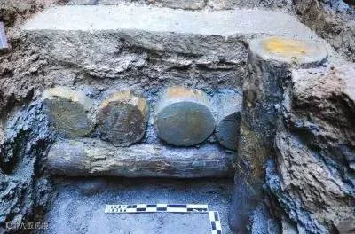 △ 故宫慈宁花园东遗址发现的建筑基址地钉和衬石枋(资料图)