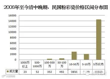 2008年至今,清中晚期、民国粉彩瓷价格区间分布图