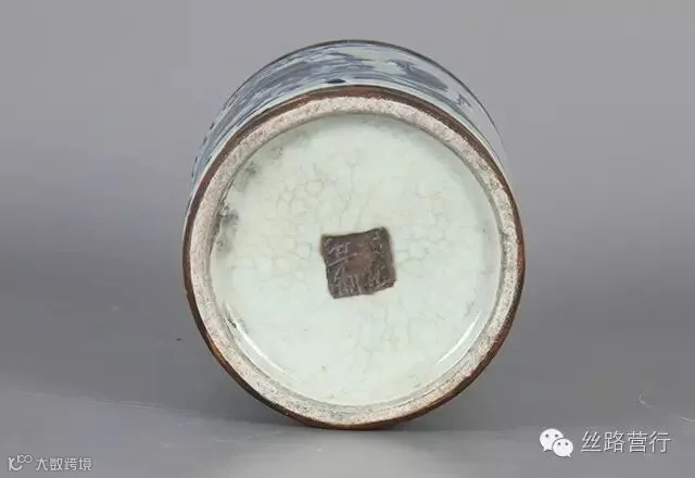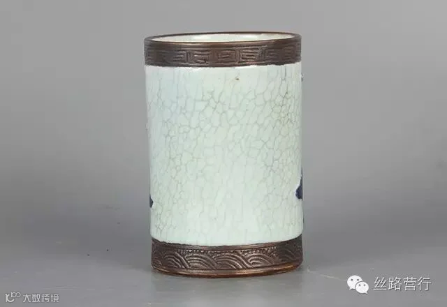 17号拍品:哥釉白地青花人物笔筒