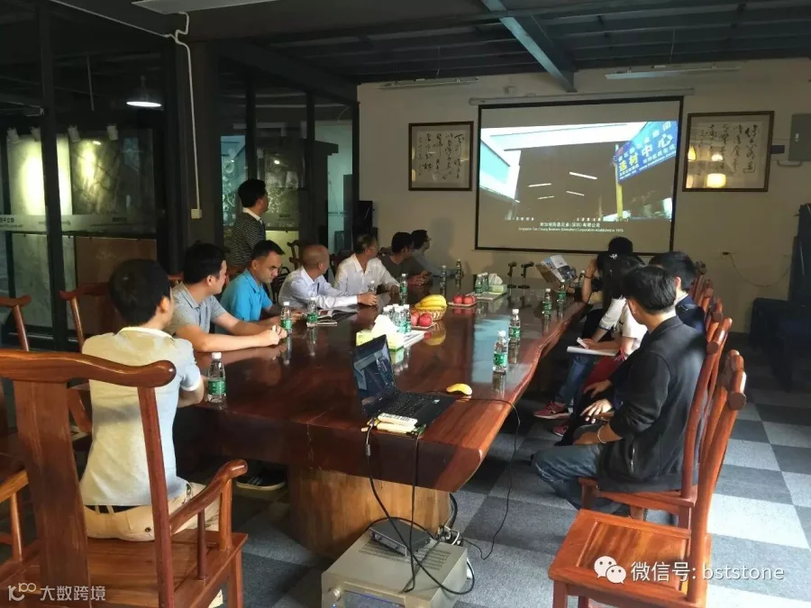领导们先对所需石材进行了参观,随后观看了佰石特集团宣传片,针对领导们提出的问题,我们一一进行了详细回答。