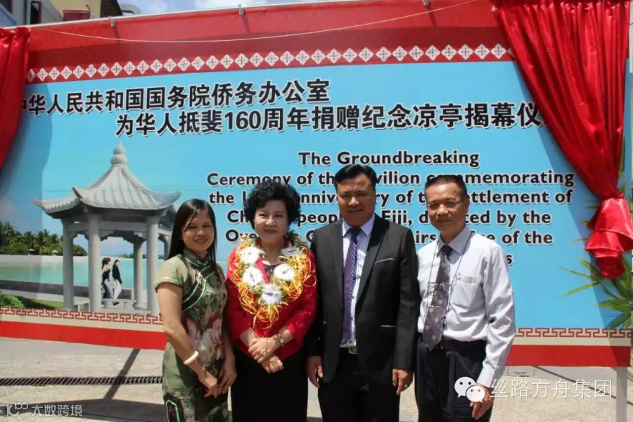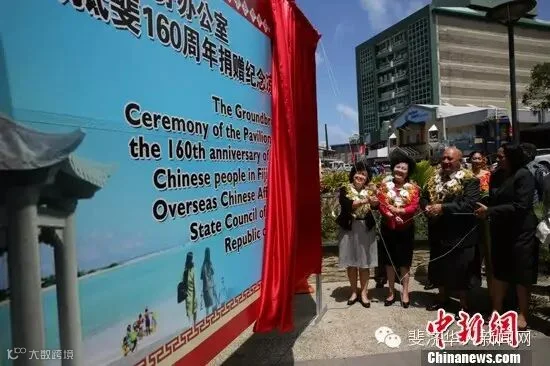 斐济共和国外交部长昆布安博拉、斐济华人协会会长陈婉娴也先后发表了致词,并与裘援平一起为华人抵斐160周年纪念凉亭揭幕。