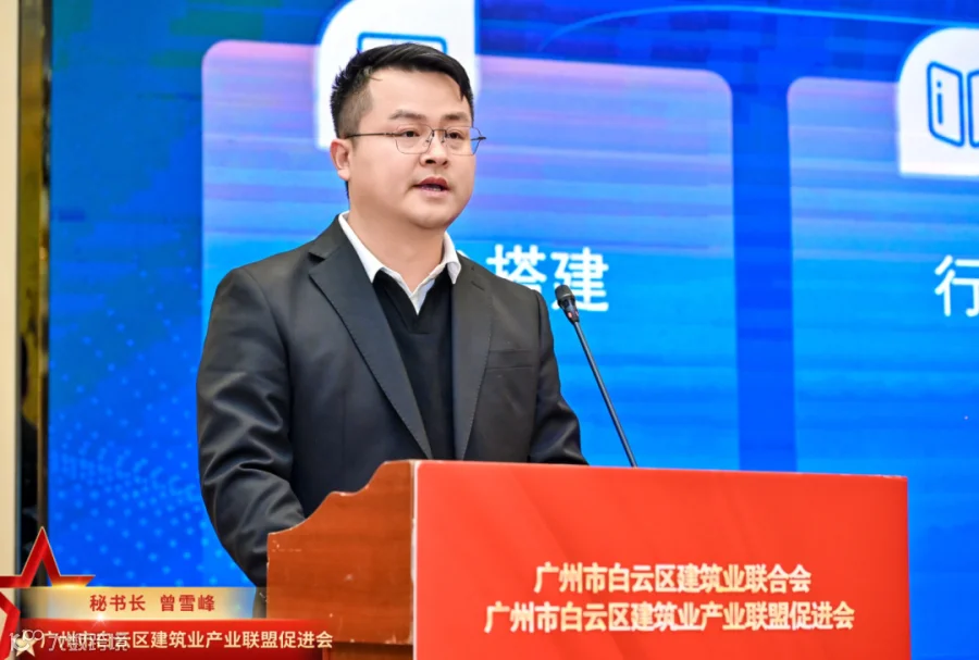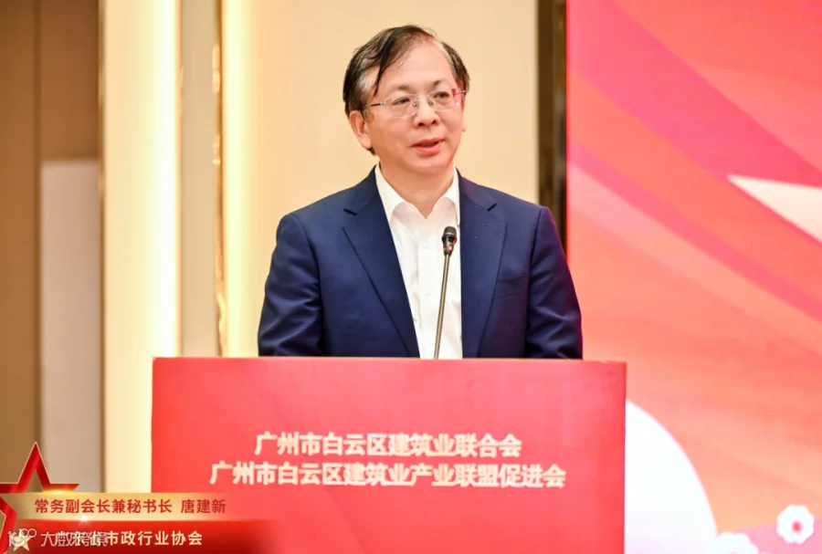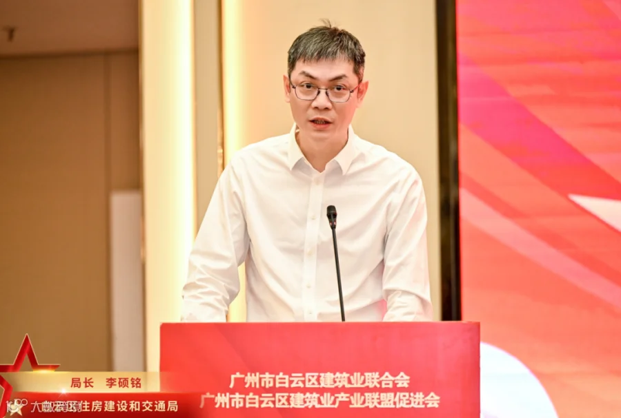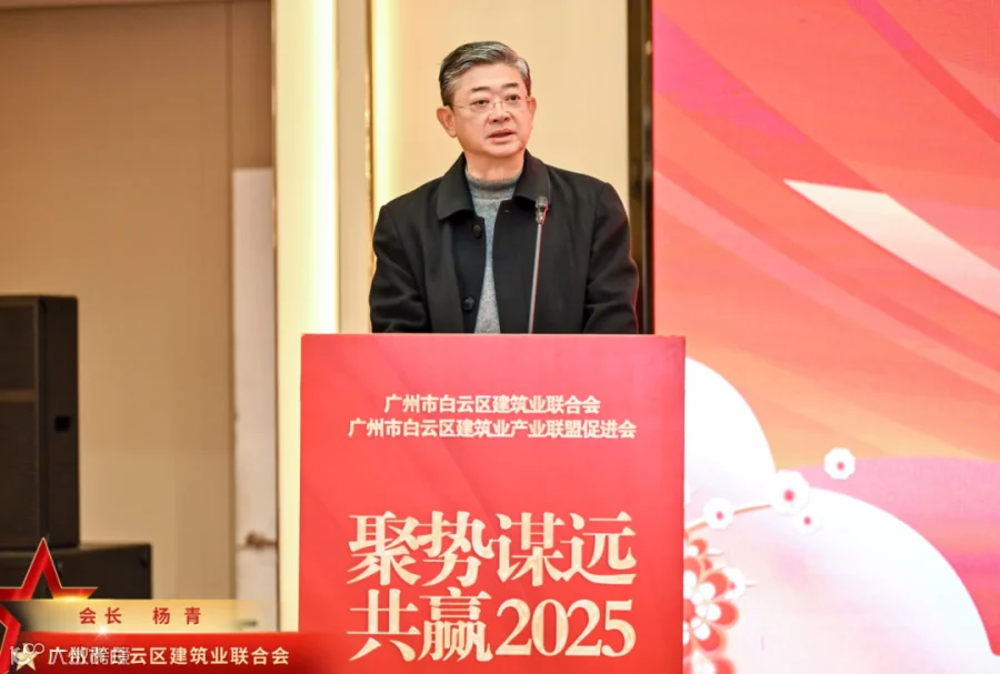 会中,广州市建筑业联合会会长杨青、广东省市政行业协会常务副会长兼秘书长唐建新、区住房建设和交通局局长李硕铭依次上台致辞,希望新的一年在区住建局的指导下,各方携手努力,共同推动白云建筑业高质量发展。