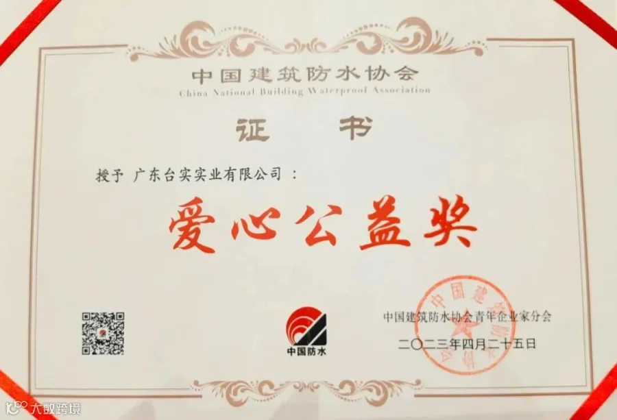 作为一家具有社会责任感的高新技术企业,台实一直以来热心公益。不仅在重阳节、中秋节等传统佳节探访慰问老人并送上了精心准备的节日礼物,台实还曾开展防水补漏技术公益活动,帮助广大百姓解决住宅渗漏顽疾,普及防水补漏基础知识……一系列公益活动得到了社会各界的广泛赞誉和支持,荣获2021年度对口帮扶先进单位、爱心公益奖等证书。