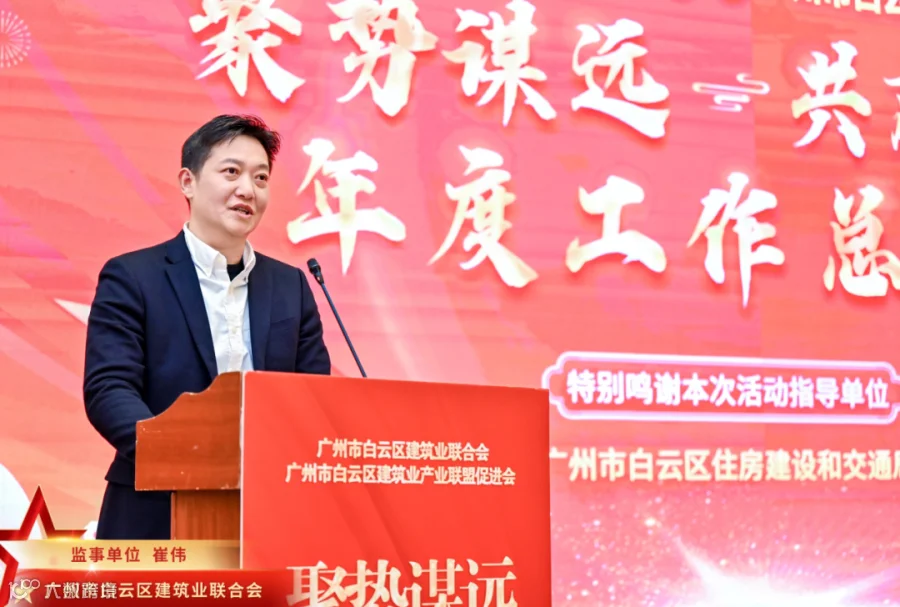 2025年1月11日下午,广州市白云区建筑业产业联盟促进会联合广州市白云区建筑业联合会在广州逸林酒店召开了以“聚势谋远·共赢2025”为主题的2024年度工作总结大会。台实副总经理邓景峰、修缮事业部经理陈建文受邀出席会议。