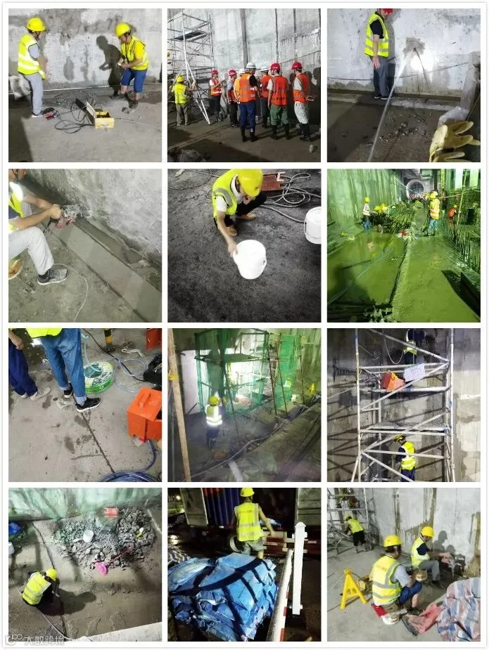 深圳地铁2号线防水堵漏工程自开工建设以来,台实施工团队得到了各级领导的关心和支持,全体人员全力以赴,克服了重重困难,在保安全、保质量、保进度的情况下,科学管理,规范施工,合理划分目标与责任,圆满的完成了建设任务,并且得到了各参建单位的广泛认可。