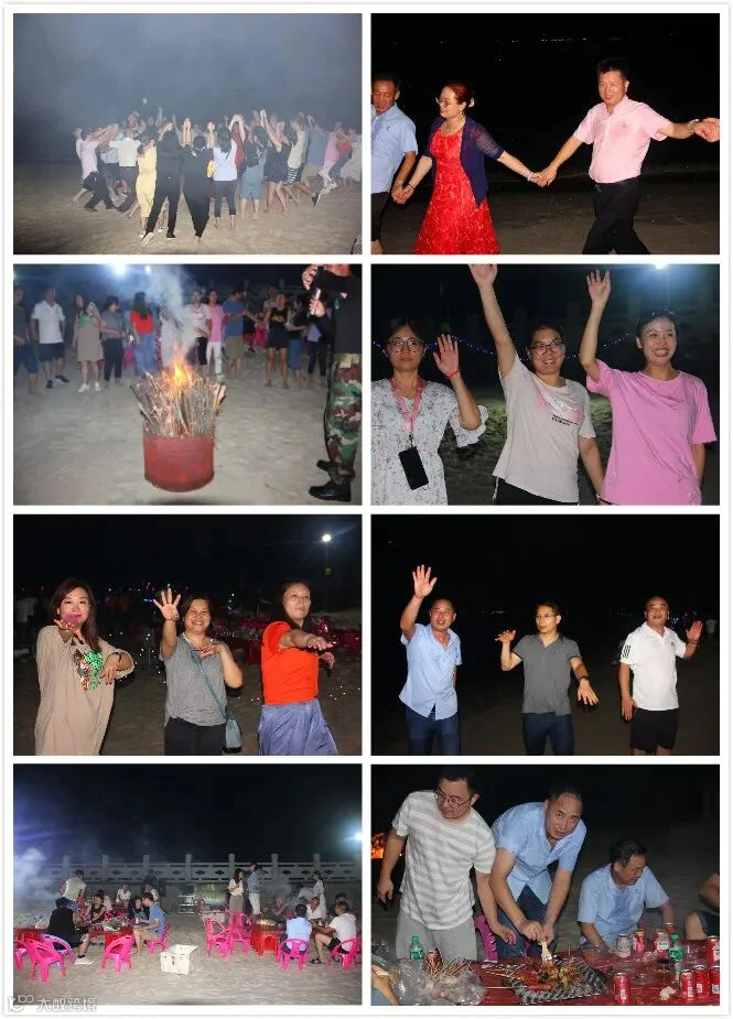 晚上,海边依然热闹非凡,台实团队各位成员亲密地围坐一堂,进行海滩烧烤活动和篝火晚会,在愉悦放松的氛围中载歌载舞。