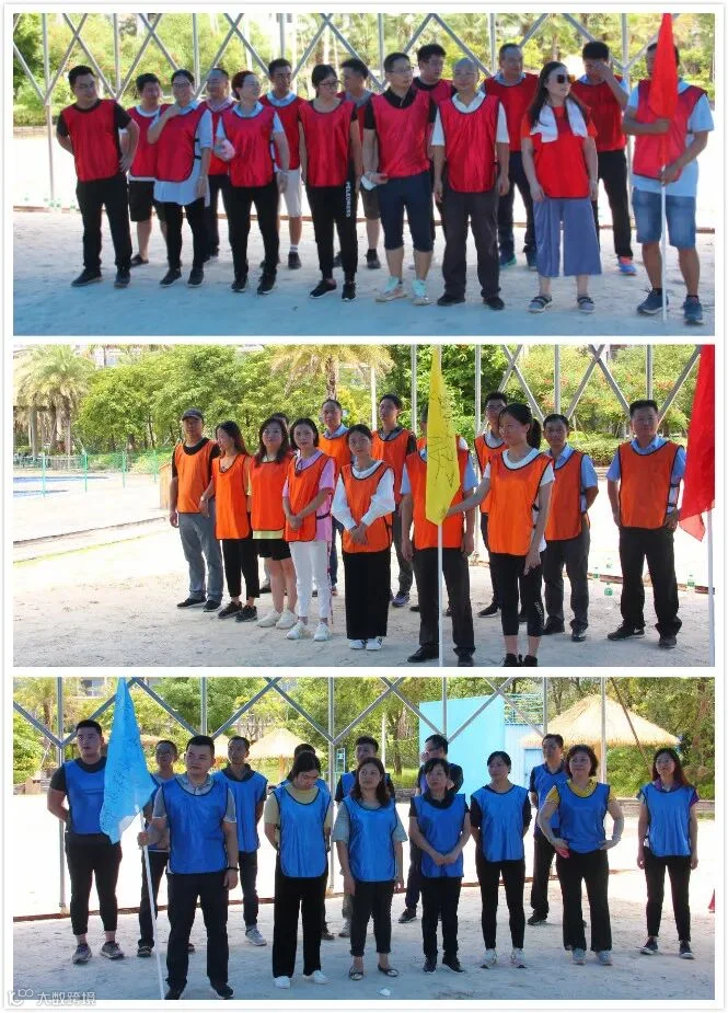 到达活动现场后,台实团队稍作休息,马上开始紧张刺激的拓展活动。拓展活动全体人员分为红橙蓝三队,并确定了各队伍队名。活动还没开始,三支队伍的队员都已准备就绪,斗志昂扬。